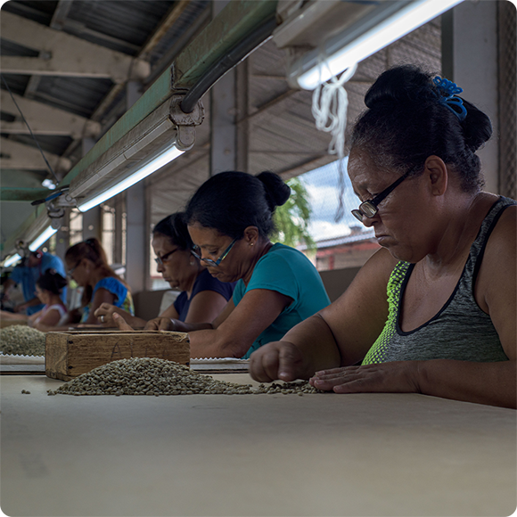 La selezione e la classificazione di diversi tipi di caffè possono migliorare la qualità in tazza. Questa attività è svolta dai crivelli per caffè (che smistano i chicchi per taglia) e da una calibratrice (che scarta quelli che non rispettano gli standard qualitativi). La Fondazione Lavazza ha adottato un sistema di smistaggio finale manuale, eseguito e gestito da una squadra di 95 donne. Grazie a loro, il caffè è classificato per qualità ed è privo dei difetti non identificabili meccanicamente.
