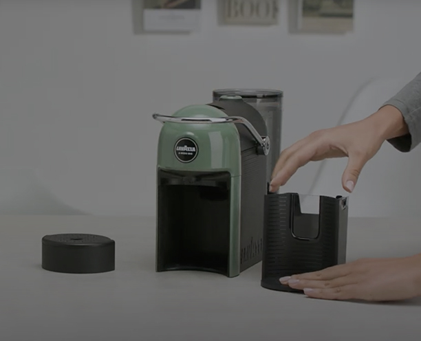 Guarda il video Il video mostra come gestire gli alert e la pulizia quotidiana della macchina Lavazza A Modo Mio Jolie Evo. Grazie alla finestra trasparente della macchina, è possibile verificare il livello di riempimento del cassetto porta-capsule. In alternativa, dopo cinque erogazioni, il pulsante segnala che è necessario intervenire. Quando ciò accade, bisogna svuotare il cassetto capsule e il cassetto dei liquidi. Vengono poi illustrate le parti removibili della macchina, tutte lavabili in lavastoviglie. La macchina entra in modalità standby automaticamente dopo due minuti di inattività, oppure tenendo premuto il pulsante per almeno tre secondi.