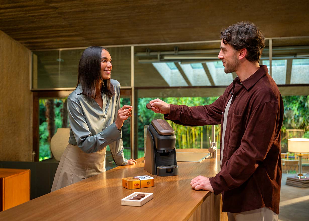 Tablì: il primo sistema con tab 100% caffè, senza involucro. Preparati per vivere un’esperienza di caffè multisensoriale a casa tua. Qualità Oro è una miscela 100% Arabica; elegante, con note fruttate e floreali.